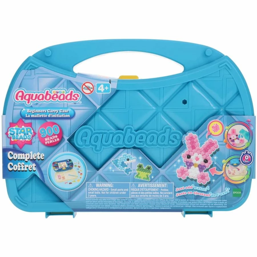 Build, spray, flip the tray, and they remain! The first water-activated fuse bead project for kids ages four and up is called Aquabeads. Everything your youngster needs to plan and make original bead masterpieces is included in the comprehensive collection. Beginners case has more than 900 solid, gem, and star beads in 24 vivid hues, a flip tray, a sprayer, a double-sided bead pen, a creative base with design pegs, and a bead palette that serves as both a storage container and a carrying case. A new format for a carry case that is quilted for storage and portability! Decorate the case with interchangeable bead patterns to make it particularly unique. You can begin constructing by choosing your template and placing it underneath the flip tray, then align the beads on the sheet with the spaces on the flip tray. As you arrange the beads on the tray, follow the template to completely cover it. To complete your design, spray the beads with water to join them together. Spray the pattern liberally after filling the sprayer with water. Flip the tray over as soon as you’ve finished spraying to move the design to the receiver for drying. When dry, proudly display your beaded creations on the creation base that is included by using the design pegs!
