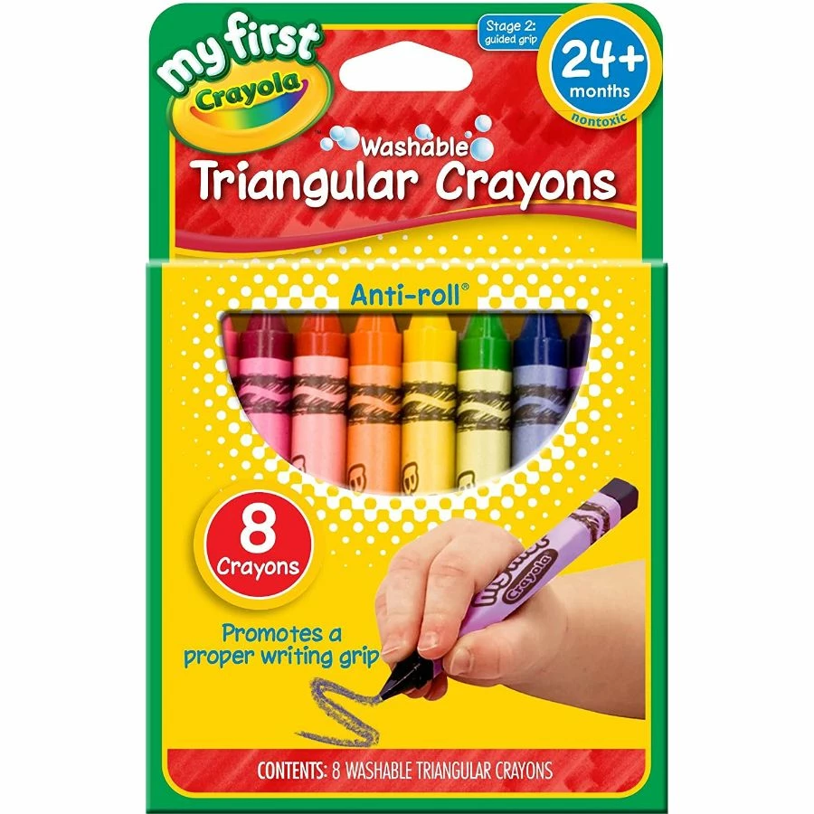 These Crayola My First Washable Triangular Crayons have great colours that are very vibrant when used for colouring on paper and they truly are washable. This is a quality product from Crayola that does not break easily and ensures that your child gets the best colouring equipment for use at school or home. The triangular shape design is big enough for the little fingers of young children to grasp and hold comfortably. The triangular shape is specifically designed to help the little ones learn to hold them in a better position in their hands and will prepare them for when they move up to other writing instruments as they grow older. Besides, the triangular shape ensures the crayons do not roll and fall off the desk and break upon impact with the typical hard floor and a triangular shape is sturdier and hold up better than a normal cylindrical shape. Suitable for ages 2 years and up.