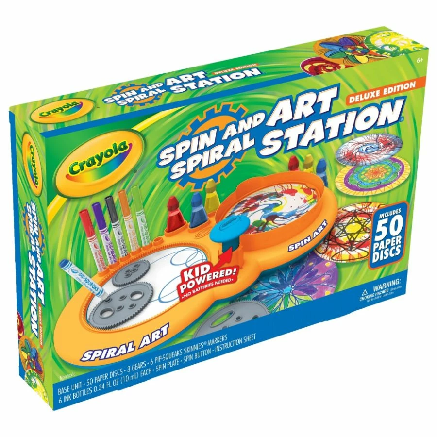 Let the creativity of your kids flow through this beautiful Crayola spin and spiral art station kit. They can make so many beautiful spiral art designs. This kit is easy to use and fun to play with. Children will love to play with it individually or along with their friends and siblings. It is a manual toy and doesn’t require any batteries to work. All the kids need to do is place their choice of coloured marker in its position, their choice of gear, the paper, and then use the spin button to create attractive designs. The major contents of this spin and spiral art station are made from hard-quality plastic that is quite durable. This spin and spiral art station kit comprise more than 60 art supplies. The kit contains 1 Spin and Spiral unit in blue and orange, 3 Spiral Art Gears, 50 Paper Discs, 6 Crayola Pip-Squeaks Markers, 6 Bottles of Drip Ink, 1 Removable Spin Art Plate, and 1 Instruction Guide to understand its working. This is a beautiful gift for children who will love to explore their creative side with this kit. It is an excellent gift suitable for all occasions and celebrations. Crayola Spin & Spiral Art Station Deluxe Edition is recommended for children 6 years and above.