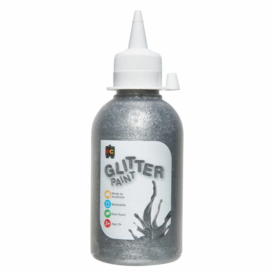 EC Paint Glitter is crafted with care and passion. This 250ml silver glitter paint bottle acts as almost a staple item for any arts-and-crafts enthusiast! Just a tiny splash of this versatile product will ensure a festive look to any drawing, painting, artwork or even a decorative handmade object. Its user-friendly nozzle enables easy application for an instant sparkly effect. The consistency is perfect for direct usage without the need for any dilution. It’s non-runny and doesn’t drip. EC Paint Glitter uses the most high-quality ingredients with uniformity of colour in both the glitter as well as the paint. The paint is non-toxic and entirely safe for use, right down to its packaging in environmentally-friendly bottles and is suitable for use by adults and children alike. Because of the nature of the product, it is recommended to keep out of the reach of children under 3 years of age.
