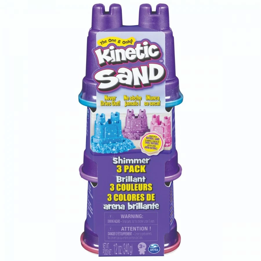 Kinetic Sand Shimmers is a 3 pack of glittering kinetic sand, which gives children the chance to play for hours building objects and landscapes out of their imagination. The sands come in 3 different shades of pastel shimmers which provide all your child’s creations with a lovely shine. The sands are blue, pink and purple. All the three containers are shaped like castles and can double as a castle mould for the kids. The castle moulds have two turrets and are purple. The sand formulated to allow kids to build and rebuild, and it never dries out. It is made of safe and non-toxic materials and uses actual sand. The sands can be used by children to create anything out of their imagination. In total, the boxes weigh approximately 340g. Recommended for children over 3 years old. Since the sand is kinetic, it is less messy, and you can easily clean up. The toy is hypoallergenic.