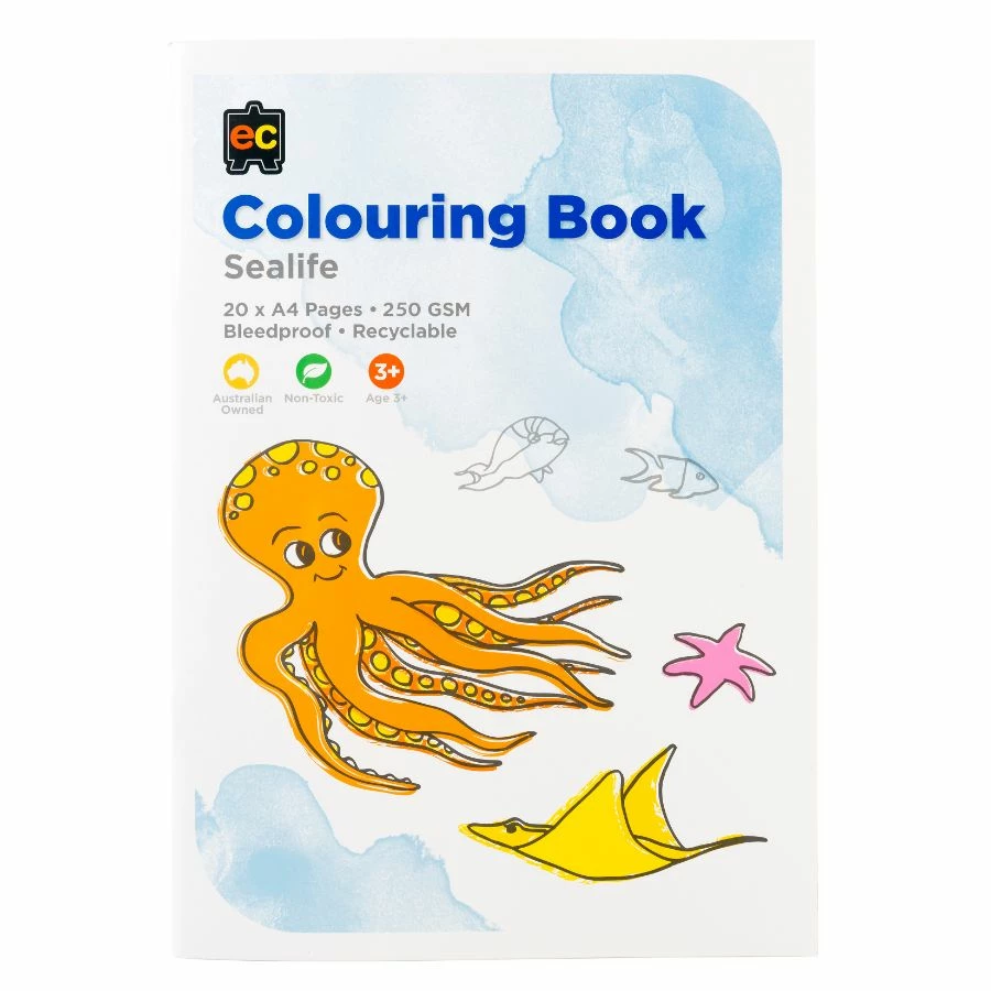 This Colouring Book Sea Life by EC is a high-quality colouring book that uses thick 250GSM paper for every page so that your child gets to work on the best material for the fun and beneficial colouring activity. This colouring book is A4 sized and contains 20 pages of pre-printed images for your young child to work on and transform into their version of colours and visuals. Colouring activity is not only a fun and enjoyable activity for young children, but it should be encouraged from a young age so your young child can develop their fine motor skills in the fingers, wrist and hands from holding and gripping the colour pencil or crayon. Colouring activity will also improve the eye to hand coordination as the child needs to colour within the boundaries of the image and apply colours at specific image locations. Other benefits are improving concentration, colour recognition, creativity, and providing the child with a sense of achievement when the colouring activity is completed. Suitable for ages 3 and up.