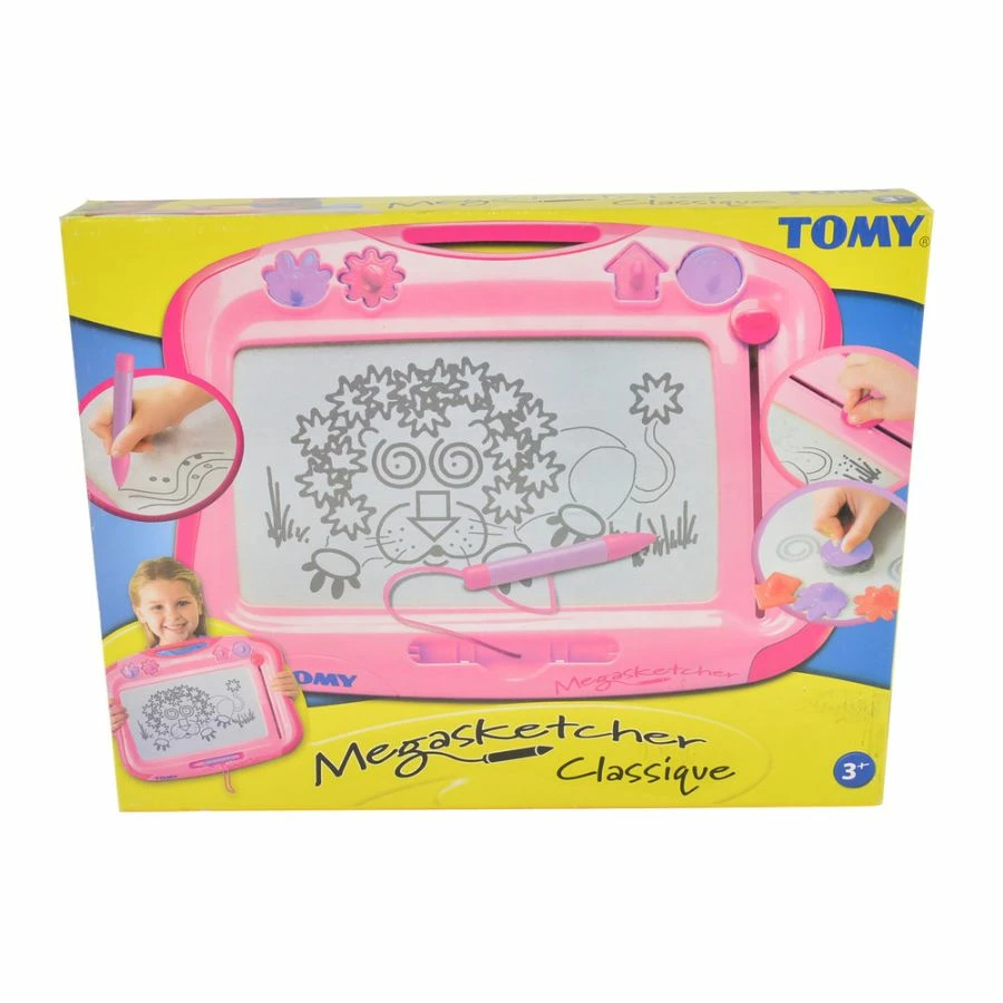 The Megasketcher by Tomy is a sketching board. It is pink in colour, and it comes with a magnetic pen that allows you to draw anything you want on the board and then quickly erase it using the dedicated erase button on the board. The box also includes four different stamps, which help you create beautiful shapes on the board to decorate your drawings. It does not require any batteries and doesn’t involve the messy use of ink and paper. So drawing becomes easier for kids and mess-free for parents. The board is of high quality with a smooth surface that allows the drawings to look neat. All additional elements like the stamps, the pen, and the erase button are built into the board, so storage is easy. The pen is attached with string so that you don’t end up losing it. To use the toy, pick up the pen and start drawing on the board and whenever you want to erase everything, swipe the erase button from top to down. The board is approximately 36cm high and 41cm wide, so it provides kids with a lot of space to draw or write. This item is recommended for children over three years old.